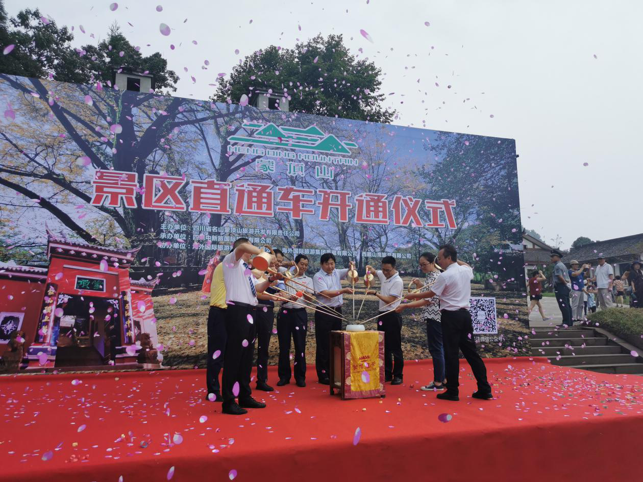 8月25日上午10:30分,成都至蒙頂山景區(qū)旅游直通車首發(fā)儀式在蒙頂山景區(qū)隆重舉行。雅安市人民政府副市長(zhǎng)朱濤、雅安市文化體育和旅游局局長(zhǎng)楊建光、雅安市林業(yè)局局長(zhǎng)楊茂雄、雅安文化旅游集團(tuán)有限責(zé)任公司總經(jīng)理朱波、雅安市名山區(qū)文化體育和旅游局局長(zhǎng)侯海鷹及蒙頂山景區(qū)負(fù)責(zé)人和各大旅行社代表、直通車游客及新聞媒體等近200人出席了此次開通儀式。