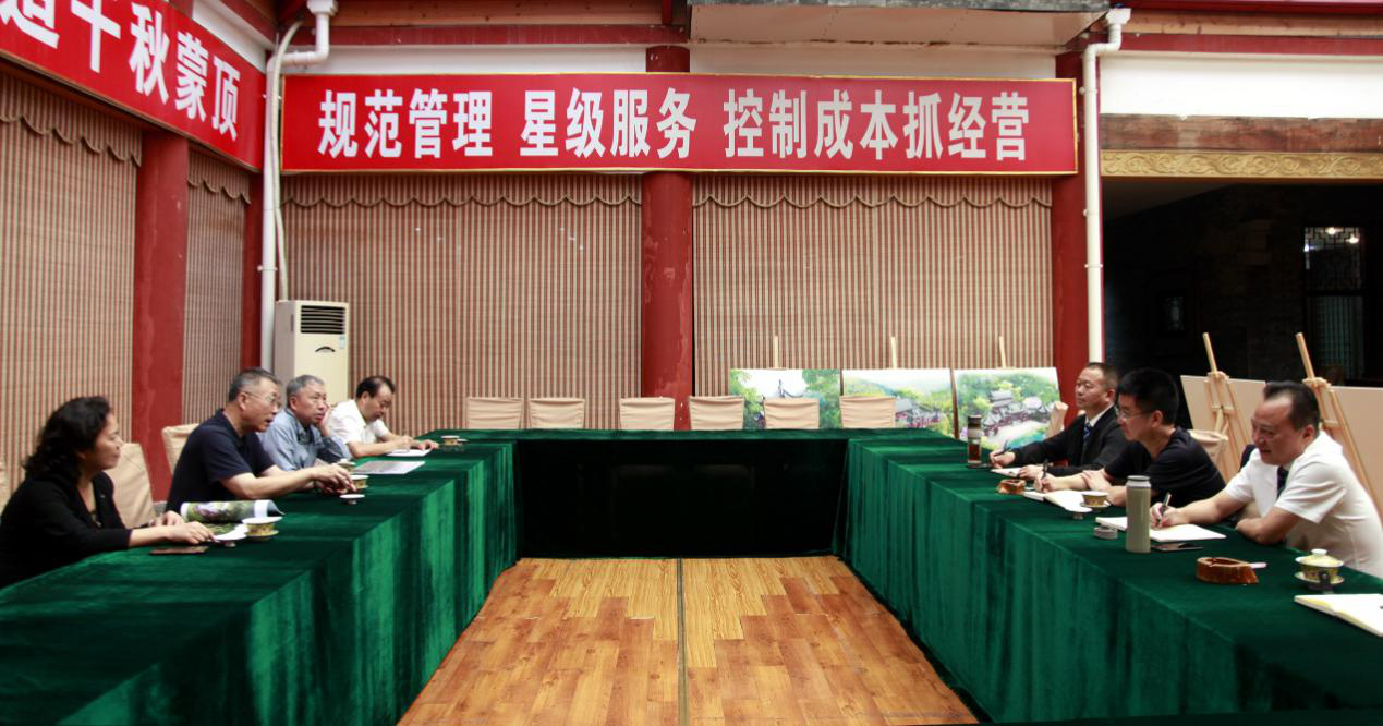 9月5日下午,市政協(xié)主席楊承一一行蒞臨蒙頂山景區(qū)調(diào)研,楊主席一行在聽取了蒙頂山景區(qū)提升改造工程和蒙頂皇茶生產(chǎn)、銷售及品牌建設(shè)情況匯報后,對蒙頂山景區(qū)的提升改造和經(jīng)營管理、蒙頂山茶產(chǎn)業(yè)的發(fā)展做了重要指示。觽堂智庫的茶產(chǎn)業(yè)專家孫皖平先生對蒙頂山茶產(chǎn)業(yè)規(guī)劃、產(chǎn)品設(shè)計與開發(fā)、景區(qū)開發(fā)建設(shè)給予建設(shè)性的指導(dǎo)意見!市政協(xié)副主席李亞蓉、文旅集團(tuán)董事長周萬平陪同調(diào)研。