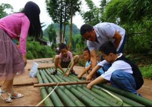 今年端午節(jié)恰逢父親節(jié),除了傳統(tǒng)文化的傳承,活動(dòng)還特別設(shè)計(jì)了親子游客的“炫父”課堂,游客以家庭為單位,上山伐竹、制作水上竹筏、烤制香噴噴的竹筒飯、制作漂亮的植物標(biāo)本,“工匠精神”深入人心。來(lái)自城里的孩子與當(dāng)?shù)厣钪O水性的孩子們一起溯溪玩水,盡情釋放玩耍天性。游客帶來(lái)的航拍設(shè)備多角度拍攝鄉(xiāng)村美景,讓久居于此的村民們第一次換了角度“看我家”,對(duì)鏡頭下如此美麗的家鄉(xiāng)流露出難以置信的表情。
