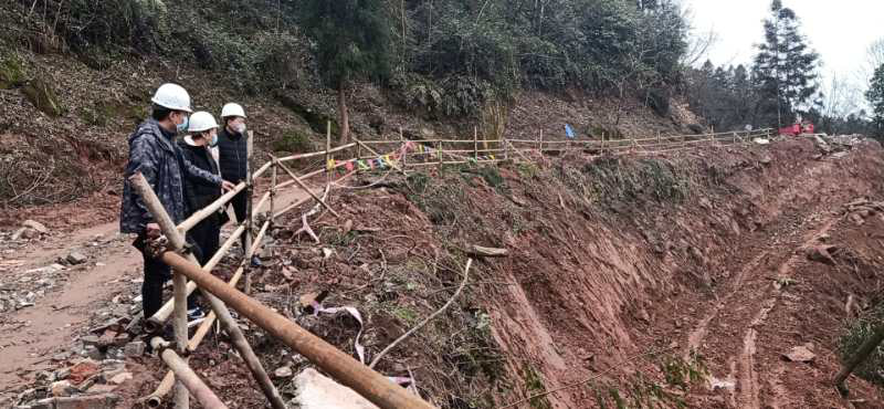 彭宗鑫對(duì)道路安全防護(hù)進(jìn)行檢查