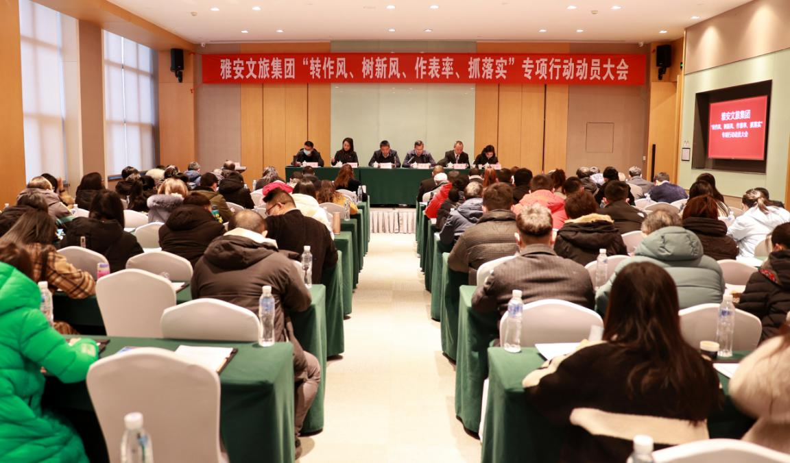 2月18日,雅安文旅集團(tuán)召開“轉(zhuǎn)作風(fēng)、樹新風(fēng)、作表率、抓落實”專項行動動員大會,集團(tuán)班子成員、部門負(fù)責(zé)人、子(控股)公司班子成員、中層管理人員共90余人參加會議。