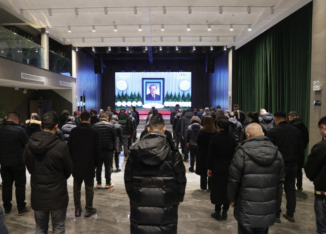 上午10時整,追悼大會默哀時,全體肅立默哀三分鐘??赐杲瓭擅裢咀返看髸?,大家一致表示,要化悲痛為力量,繼承江澤民同志的遺志,更加自覺地團結在以習近平同志為核心的黨中央周圍,高舉中國特色社會主義偉大旗幟,堅持以習近平新時代中國特色社會主義思想為指導,大力弘揚偉大建黨精神,全面貫徹落實黨的二十大精神,以堅定信心、埋頭苦干、奮勇前進之姿服務文旅事業(yè)各項工作高質量發(fā)展。