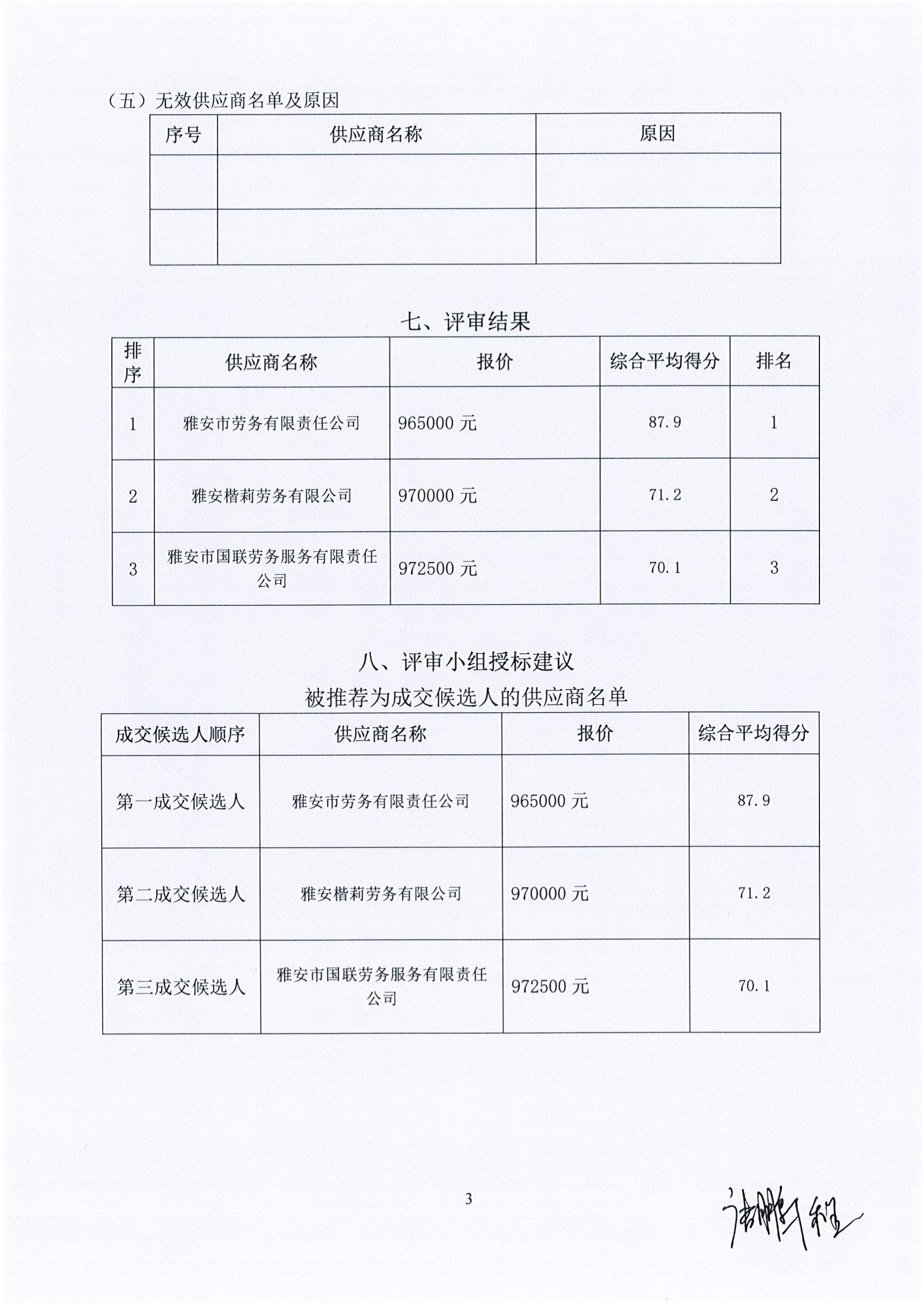 雅安蒙頂山文化發(fā)展有限公司酒店管理分公司 職工勞務(wù)外包服務(wù)采購項目評審報告