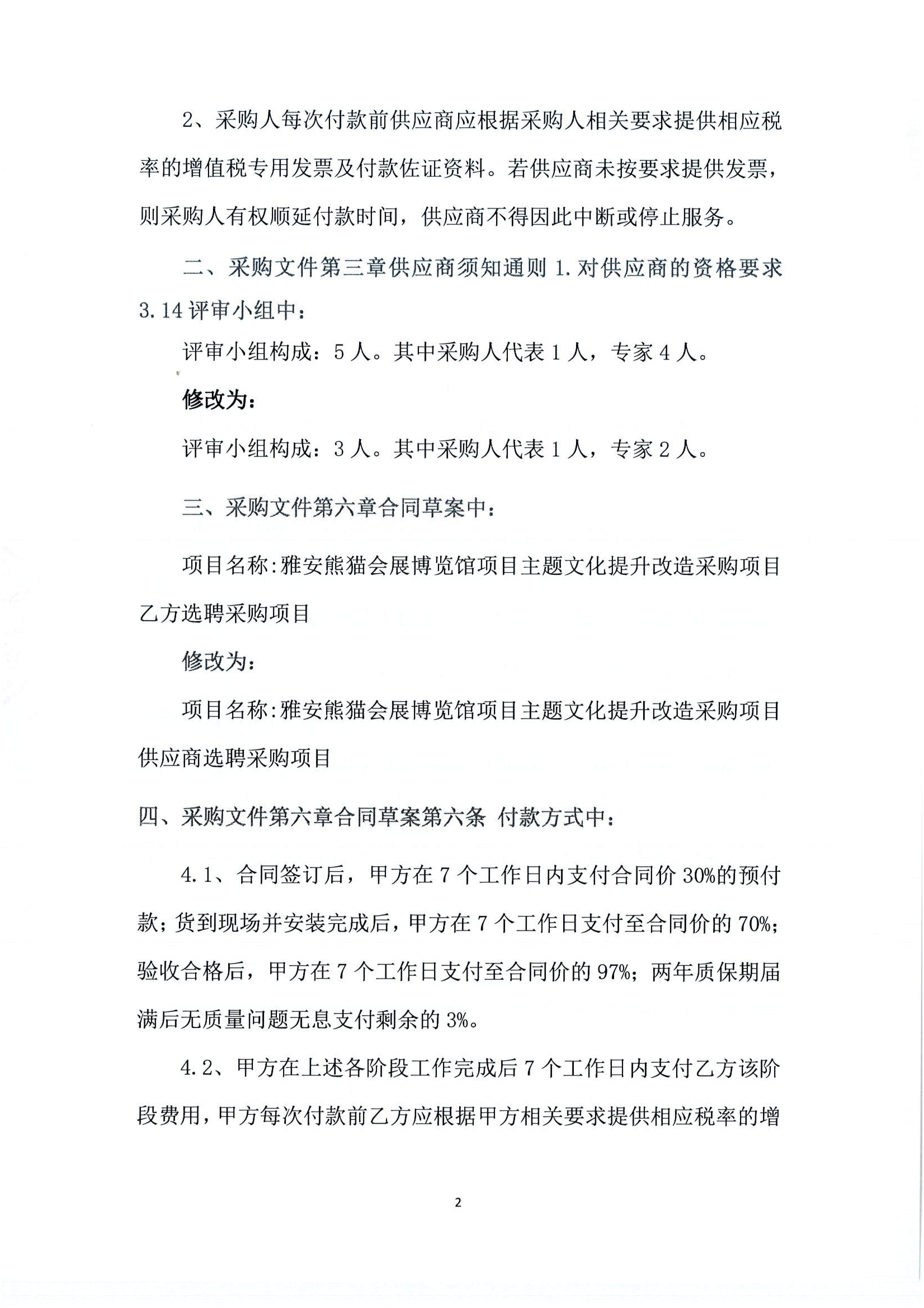 雅安熊貓會展博覽館項目主題文化提升改造采購項目供應(yīng)商選聘采購項目-補遺書01號