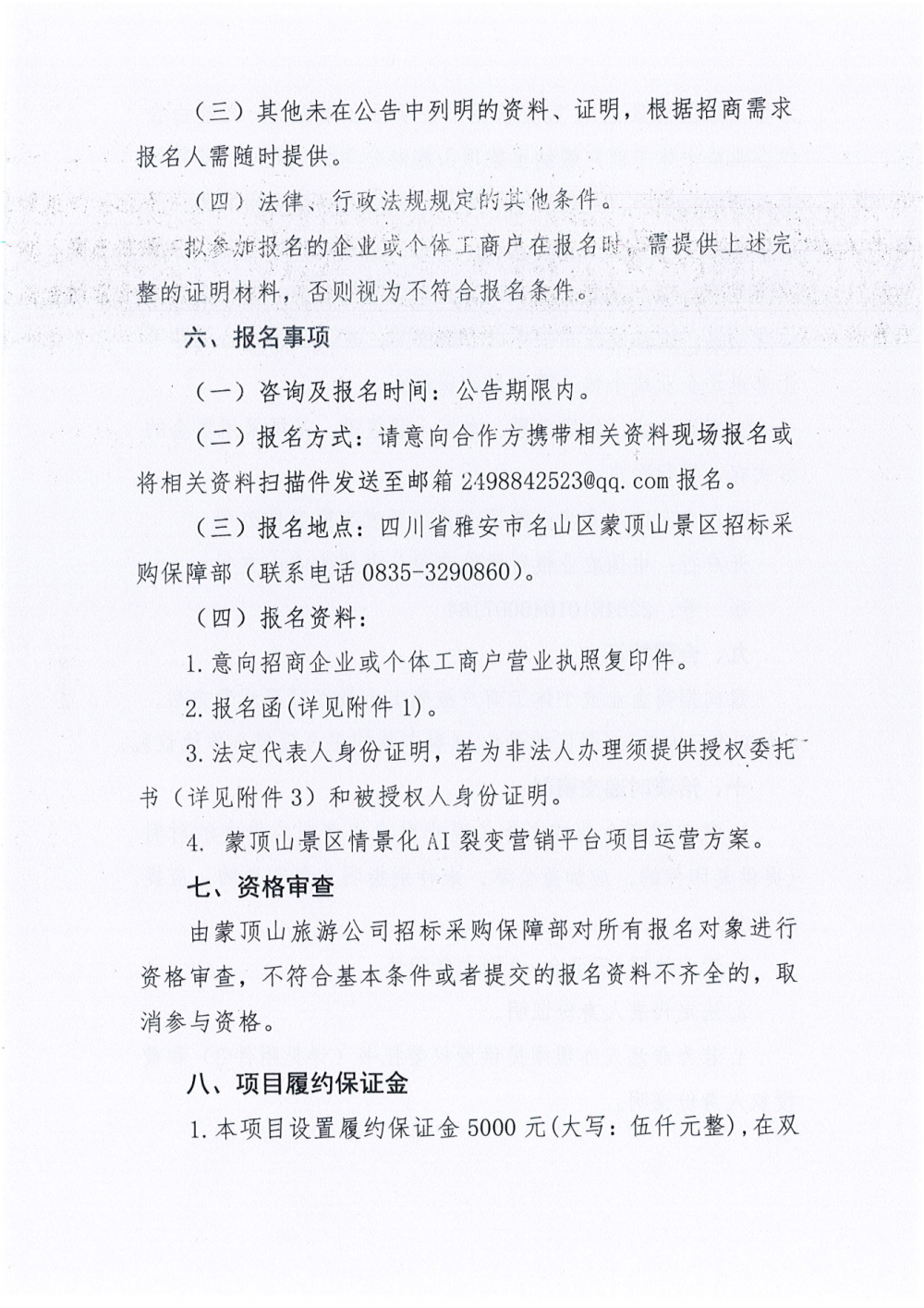 四川省名山蒙頂山旅游開發(fā)有限責(zé)任公司 景區(qū)情景化AI裂變營銷平臺項目招商